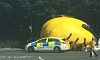 شتم السائقون البالون و أحدهم فقد مرآة سيارته الجانبية! قبضت الشرطة على البالون بعد 20 دقيقة و تخلصت منه.