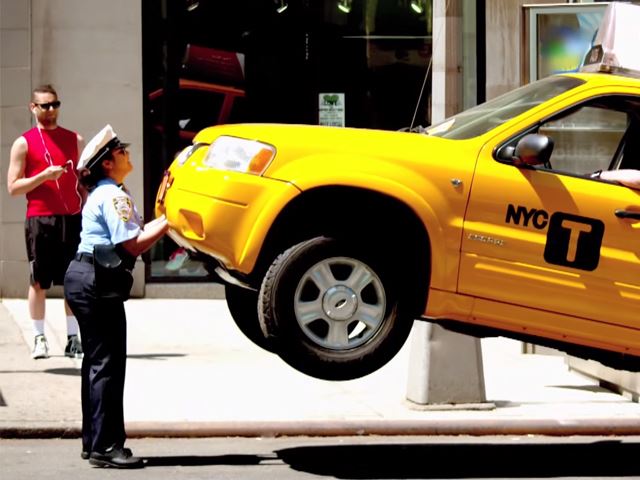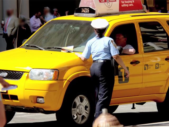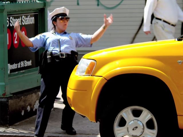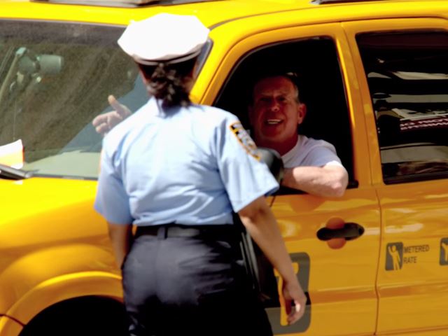 ما بدا كسوء تفاهم بين سائق سيارة أجرة و شرطية سير في مدينة نيويورك، تحول إلى مشهد مفاجىء لن ينساه المشاة.