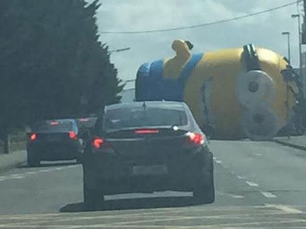 لا بد من عدم وجود أي شيء مضحك بخصوص زحمة السير، و لكن هذه بالفعل أضحكتنا! دفعت الرياح الشديدة بالونا من 40 قدم إلى التنقل من مهرجان محلي حتى وسط طرقات دبلن، مما سبب زحمة سير خانقة. شتم السائقون البالون و أحدهم فقد مرآة سيارته الجانبية! قبضت الشرطة على البالون بعد 20 دقيقة و تخلصت منه. من كان يتوقع أن يجلس وسط زحمة سير خانقة بسبب بالون عملاق!