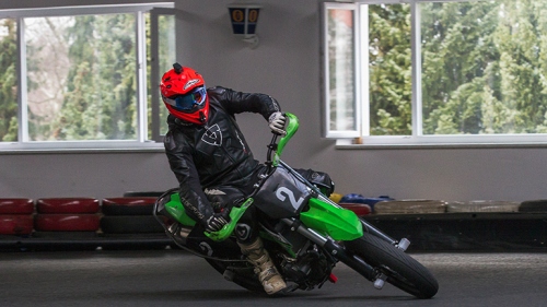 Racing a motorcycle on an indoor kart track is not normal. Doing it on a sub-freezing winter morning in Germany isn't either. It does somehow become easy to forget about the lack of heat and ominous risk of bodily harm once engines start up, however.