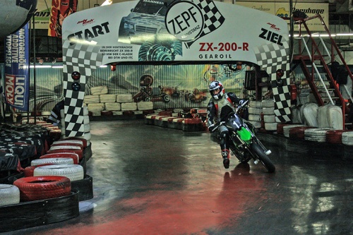 Every winter a complete nutter, Lothar Schauer, hosts an indoor Super Moto series around Germany, conducting training days and races up to 3 times a month. In all compliment I am describing Lothar as a nutter, he would admit himself that he is one in every way.