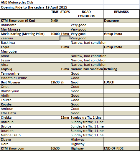 ANB Motorcycles club has the pleasure to invite you on Sunday the 12th of April to Its Opening ride to Beit Mounzer.