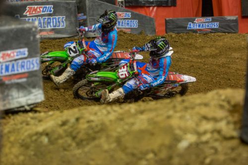 After winning the opening round of the season, Blose had endured some ups and downs heading into Nashville, even missing a night of action with an injury. However, he bounced back in a big way inside Bridgestone Arena. In the first Arenacross Class Main Event, Blose grabbed the hole-shot with Husqvarna’s Kyle Regal, Suzuki’s Cory Green, and Kawasaki teammates Matt Goerke and Jacob Hayes rounding out the top five. While Blose and Regal asserted themselves out front, Green, Goerke and Hayes engaged in an exciting battle for third. The Babbitt’s tandem soon overtook Green, while Hayes fought his way around Goerke to take over third.