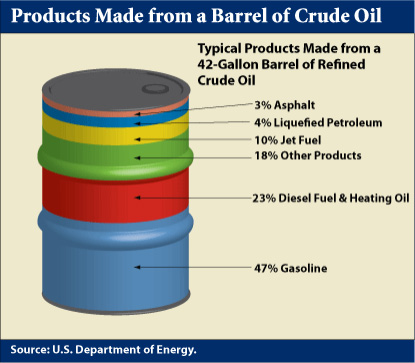 Gasoline is not a pure substance, made up of identical molecules. It’s a mixture of some 270 different hydrocarbon structures (molecules made up of carbon and hydrogen atoms), chemically bonded together. It is a mixture because what we call “gasoline” is simply that fraction of petroleum that falls between two specified boiling points, chosen to assure that the resulting product is volatile enough for use in spark-ignition engines.