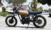 Starting life as a 1976 Honda CJ360T, it has since lost its fenders, tail section, mirrors, handlebars and factory paint.