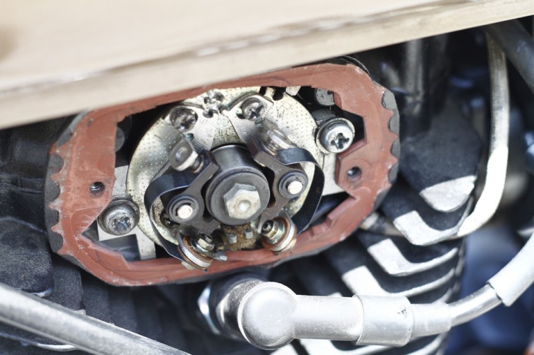 Naturally, I didn’t take a before photo for the same part, but here’s a photo of the crappy spray-bomb job the guys did on the engine cases.