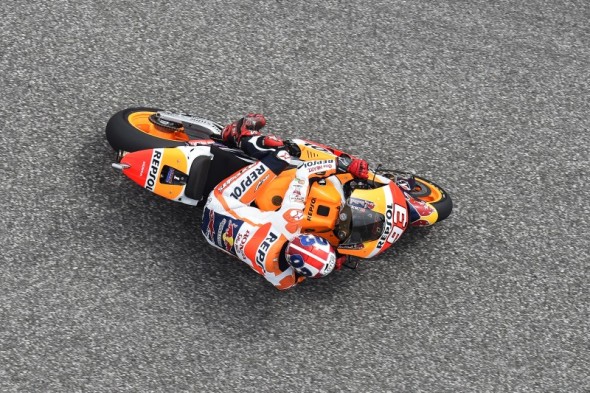 The track improved as the FP2 session continued and it was reigning World Champion, Marc Marquez, who finished on top. His time of 2’04.835 recorded on his final lap of ten, placed him 0.327 seconds ahead of satellite Honda rider Cal Crutchlow in the combined times. Marc’s teammate, Hiroshi Aoyama, finished the day in 16th with his time of 2’07.268 (lap 12/12). Hiroshi – standing in for injured Dani Pedrosa – was grateful to have some dry track time to assist his learning experience aboard the Honda RC213V.