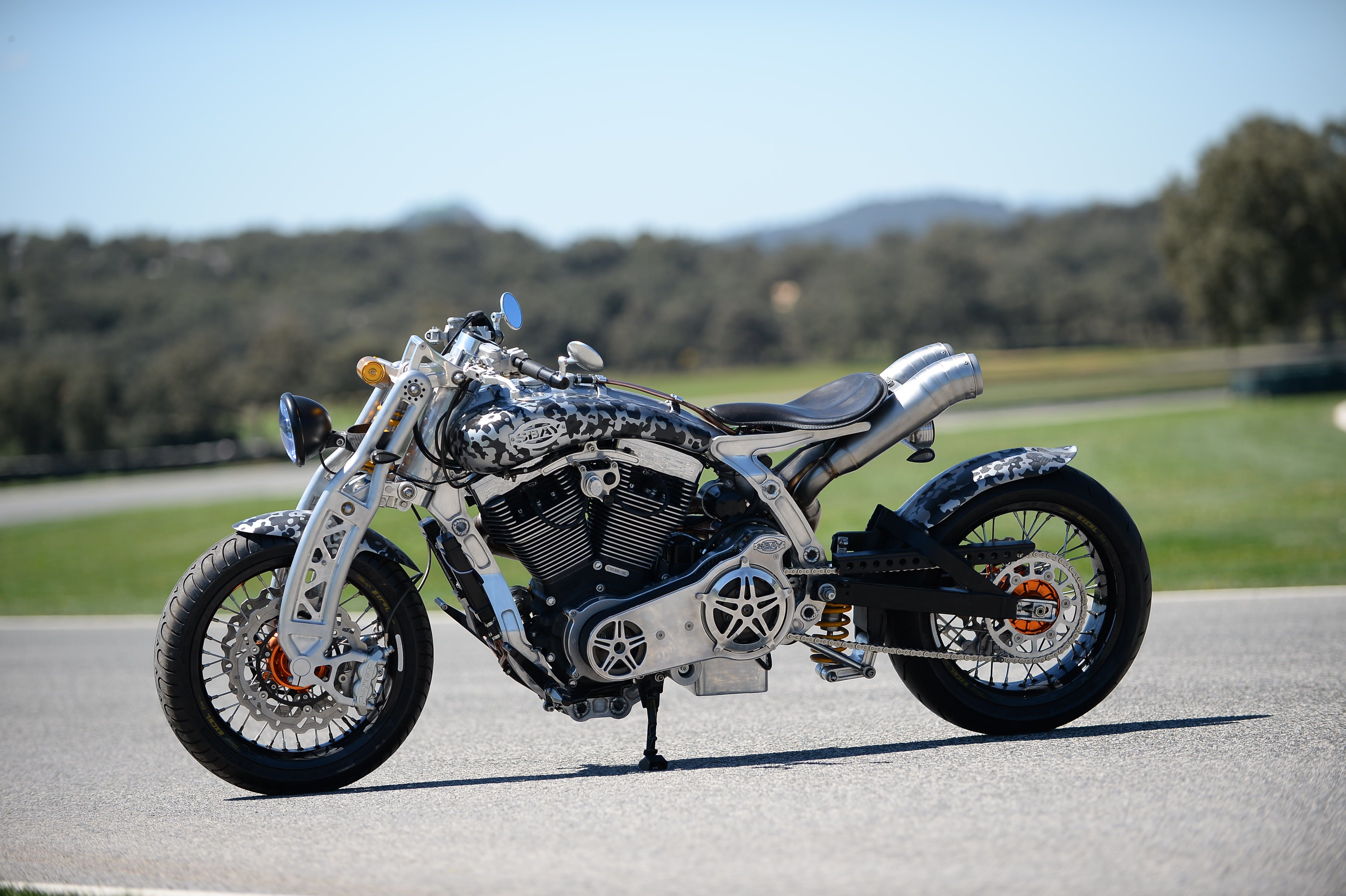 Never before American engines have been wrapped in such radical hand-made frames, at first sight they may look like Mad Max bikes but looking at the details you will discover that aluminum, copper, leather, carbon fiber and the best European components are tastefully mixed to make sculptural bikes that ride as race replicas.