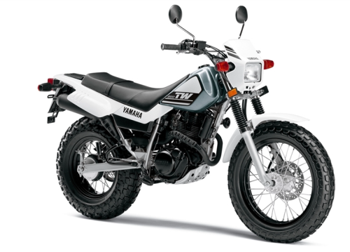 Still the goofiest looking motorcycle in mass production, Yamaha keeps building the venerable TW200 for a reason: like a cockroach, it's exceedingly hard to kill. Those big-ass tires can tackle just about anything, from chewed-up city streets to dirt and rocks. There's not a lot of plastic, so you can bang the hell out of it - slam it into a tree, the side of a city bus, whatever. Drive it off of a cliff - you'll land on those balloon tires and bounce your way to safety. I exaggerate, of course. But the TW200 has become somewhat legendary for its hardiness and fun factor. And this is a bike that you'll really never outgrow; if you decide you want a bigger ride, presto, now you have a weekend toy. New features for 2015? Well, the gas tank has a pretty sweet new graphic. (Photo courtesy of Yamaha.)