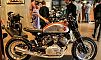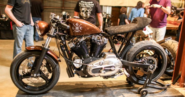 Trends? The inclusion of several un- and restored and vintage bikes was heartening, as I’ve always said the future of the old bike movement rests with young Custom devotees. While it’s still popular to tart up CB Hondas into café bikes, the real go-fast scene is increasingly wicked, and serious about performance, as displayed by Revival itself with its J63, the Burly Brand tracker, the Apogee Monster, and the sick trellis-fork Ducati of Ian Halcott. Choppers are continuously refining the old school and keeping paint skills fresh, and a few builders managed to surprise even this old dog. Jeremy Cupp of LC Fabrications caught everyone’s eye with his—dig this—speedway custom, which mated a Blast crank to a Duc head, in a handbuilt chassis featuring a gutted upside-down fork with external springs and hydraulics. Jeremy’s work was clever and clean, with some seriously Falconesque tricks, like a spring-and-ratchet tuckaway kick lever, at which I went ‘oooh!’ It was the bike everyone talked about, so it was no surprise it won the People’s Choice award, announced long after those choosing people were gone on Sunday, so just the builders could show their appreciation, which was sweet. Be there next year, y’hear?