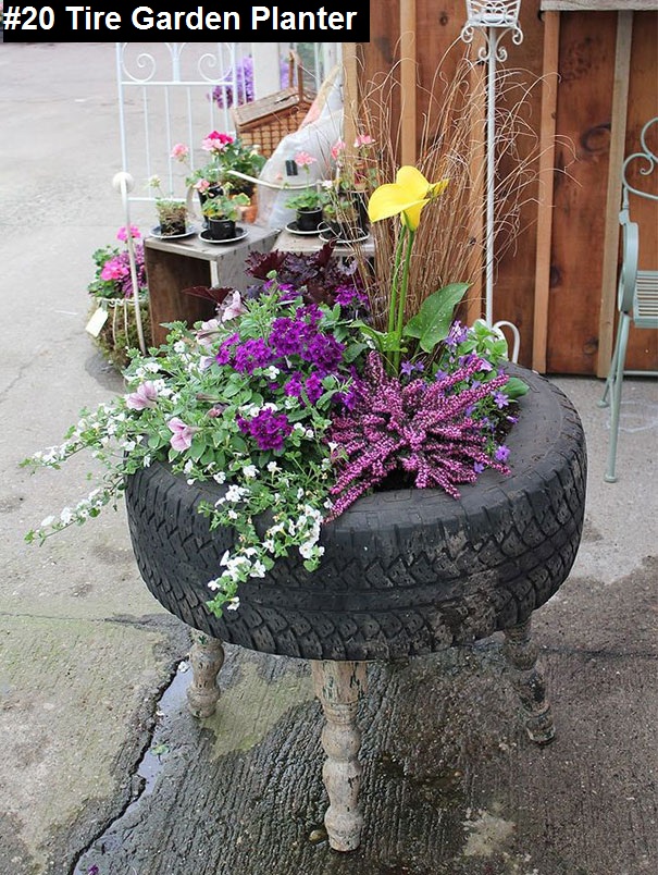 20) Tire garden planter