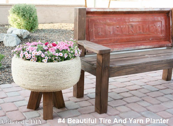 4) Beautiful tire& Yarn planter