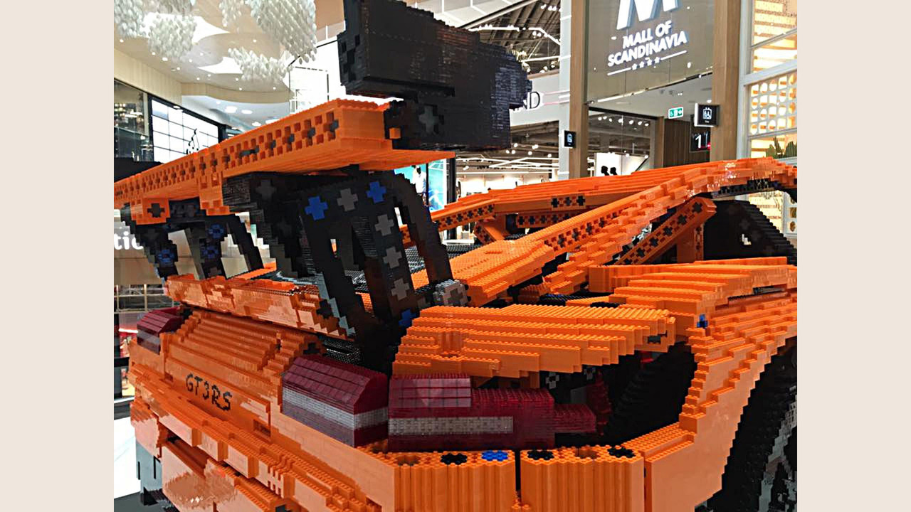 This Lego sculpture took us to a whole new level, with its own 911 version of the race car in Sweden at Scandinavia Mall!
