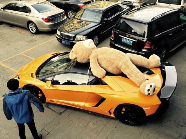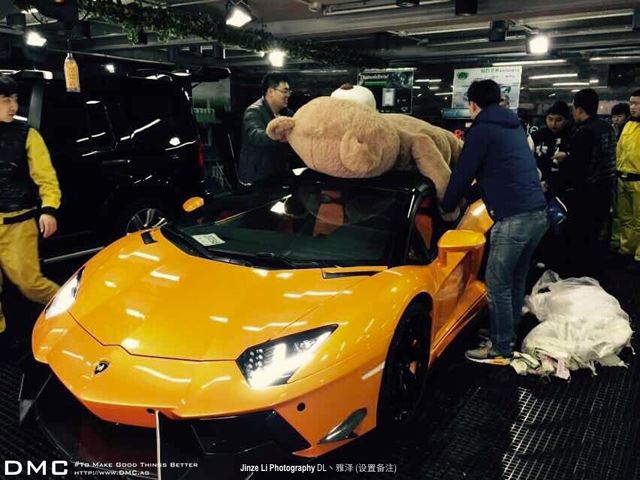 We’re not sure what inspired the owner of this DMC-styled Lamborghini Aventador to strap a giant teddy bear onto the supercar’s roof, but if it was to attract attention then mission accomplished.