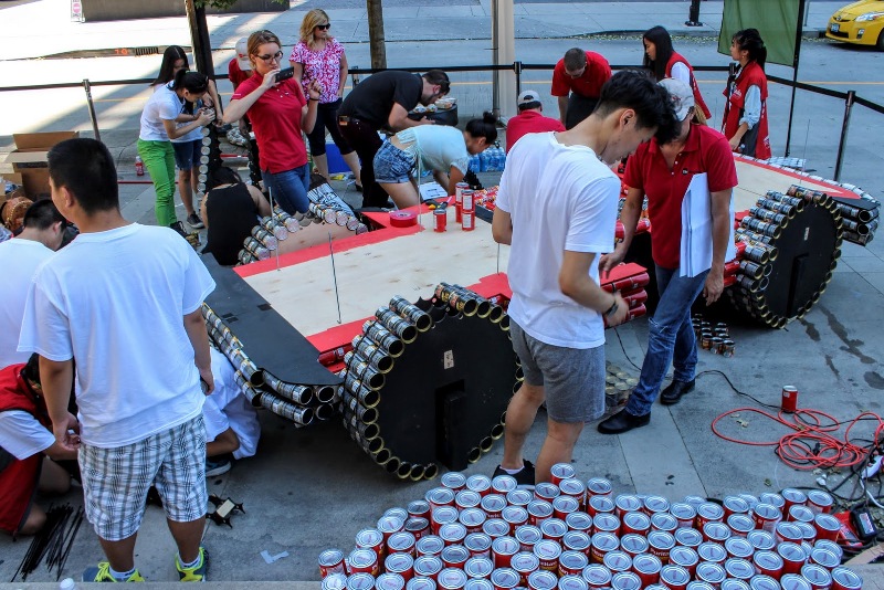 The “Canstructured” vehicle was displayed at Vancouver’s waterfront Canada Place in order to raise awareness about poverty and hunger in a fun and interactive manner, before donating all cans used to the Greater Vancouver Food Bank Society.