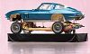 After it rolled off the assembly line, GM shipped it off to a specialty company that built attention-grabbing exhibits for commercial and industrial shows. Basically, the body was mounted on elevating rams that raised the exterior almost two feet off of the chassis, thus leaving the internal running gear fully exposed. Then the exterior of the engine, transmission, driveshaft and other mechanical bits were finished in bright red. Even the muffler’s exhaust chambers, section of the chassis, and the right front disc brake were exposed. After it was retired from the show circuit in 1965, this display Vette disappeared.